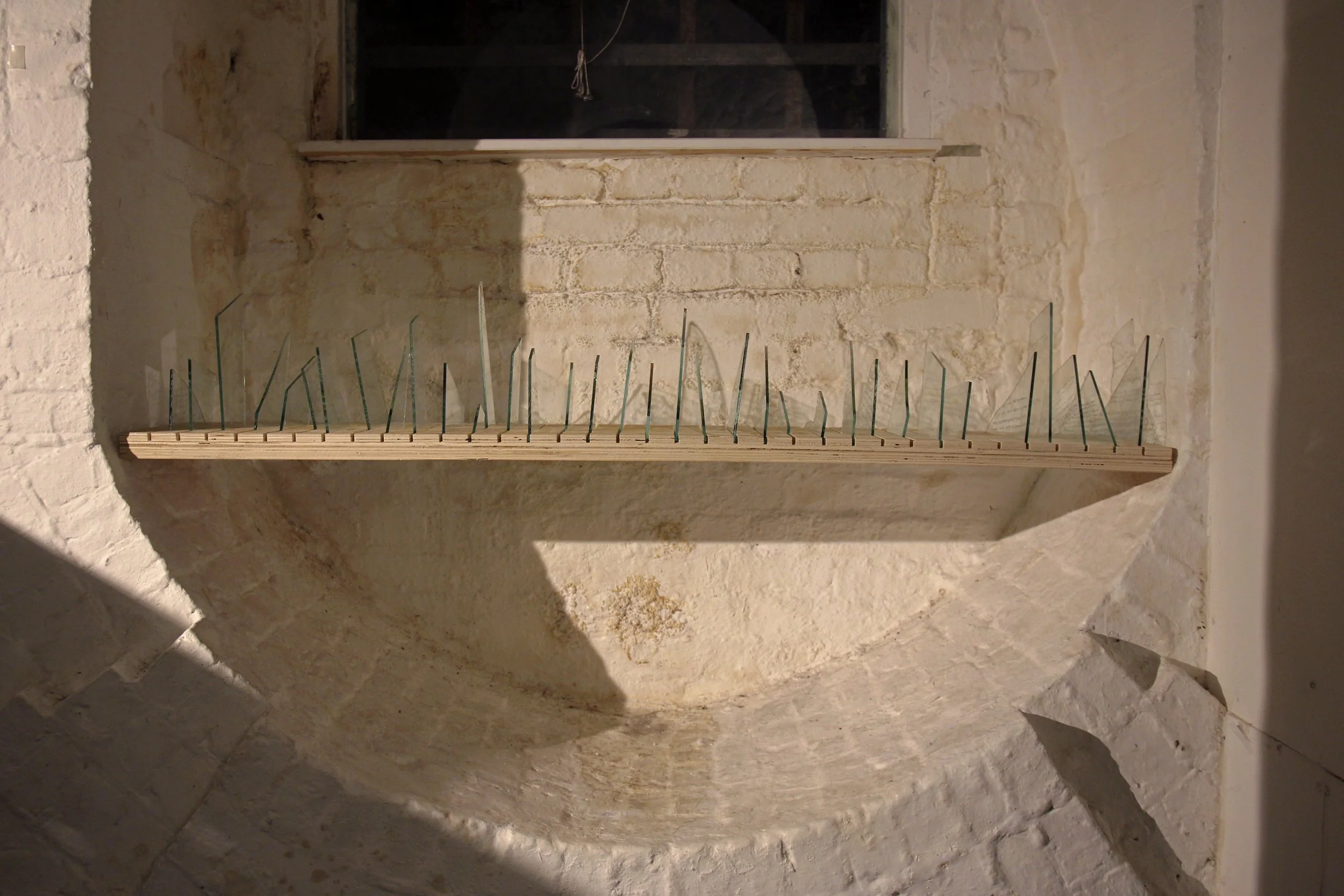 The participant’s cards were collected at the end. As a final twist, the handwritten information was engraved on shards of broken glass before being displayed in a growing, iterative, participatory artwork at the end of the space.